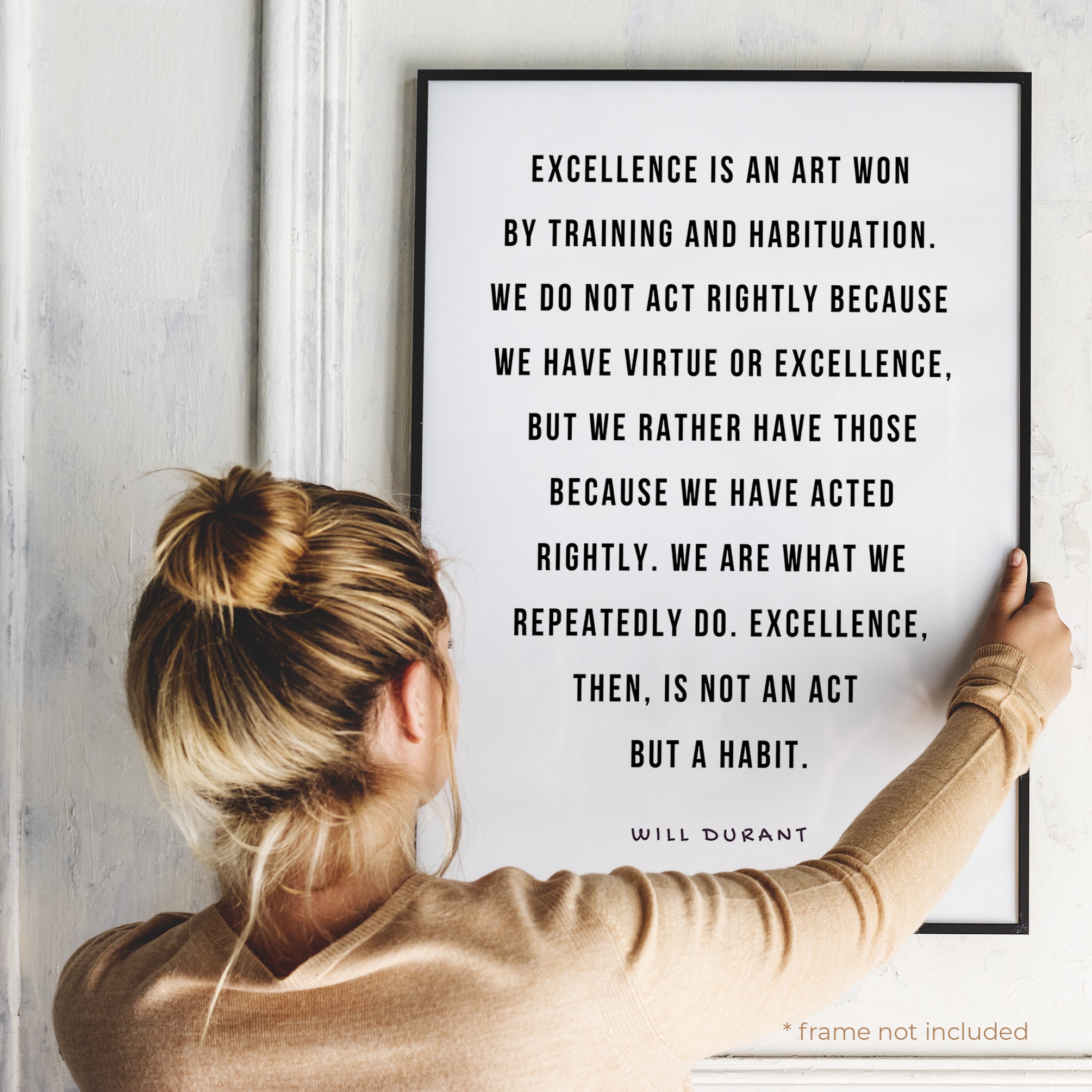 Will Durant Excellence Is Quote Print Productivity Quote Etsy